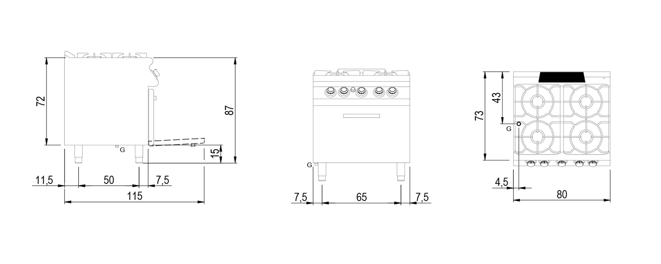 Cuisinière gaz 4 brûleurs four électrique GN 2/1