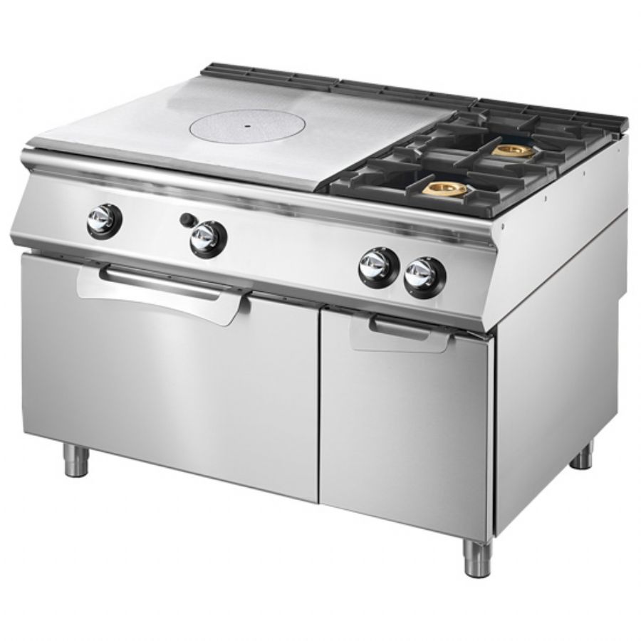 Cuisiniere professionnelle a gaz 4 bruleurs 8,5kW chacun sur four electrique GN2/1