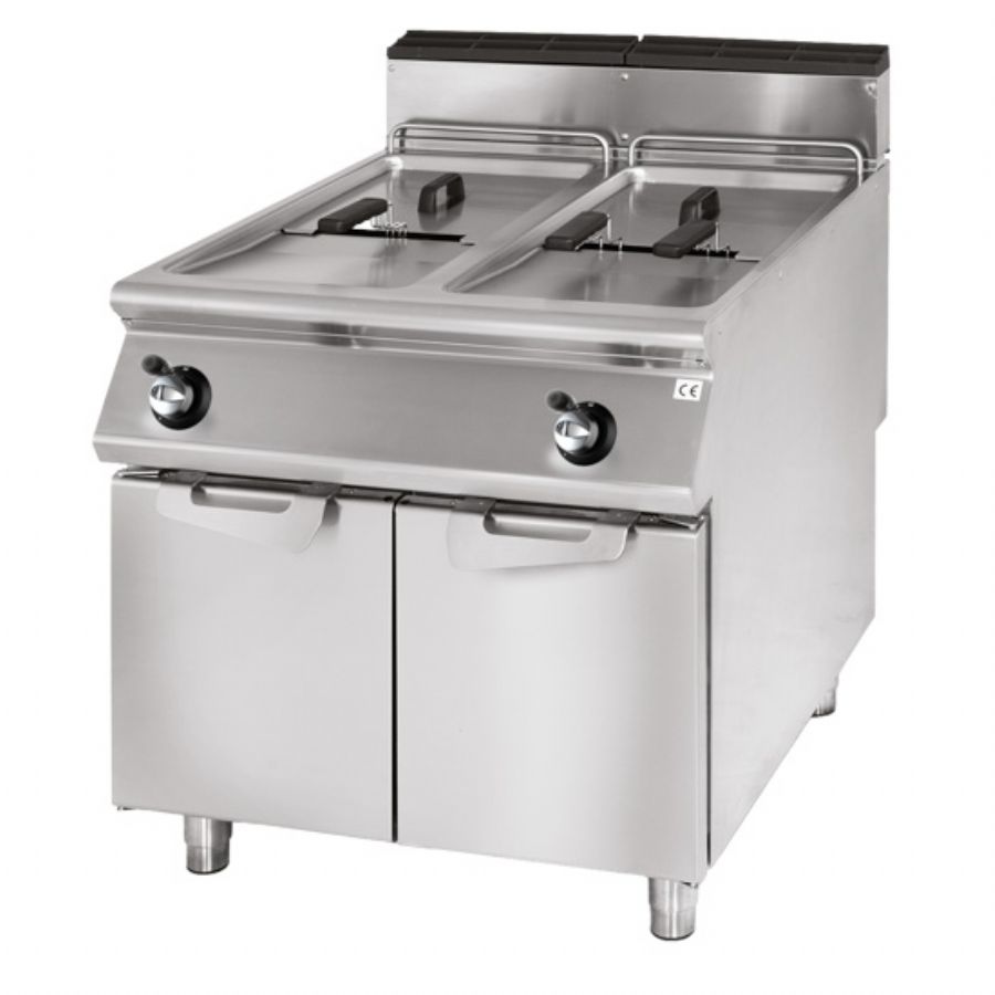 Friteuse à gaz 2x20 L sur meuble 2 portes battantes - 800x900x900 mm