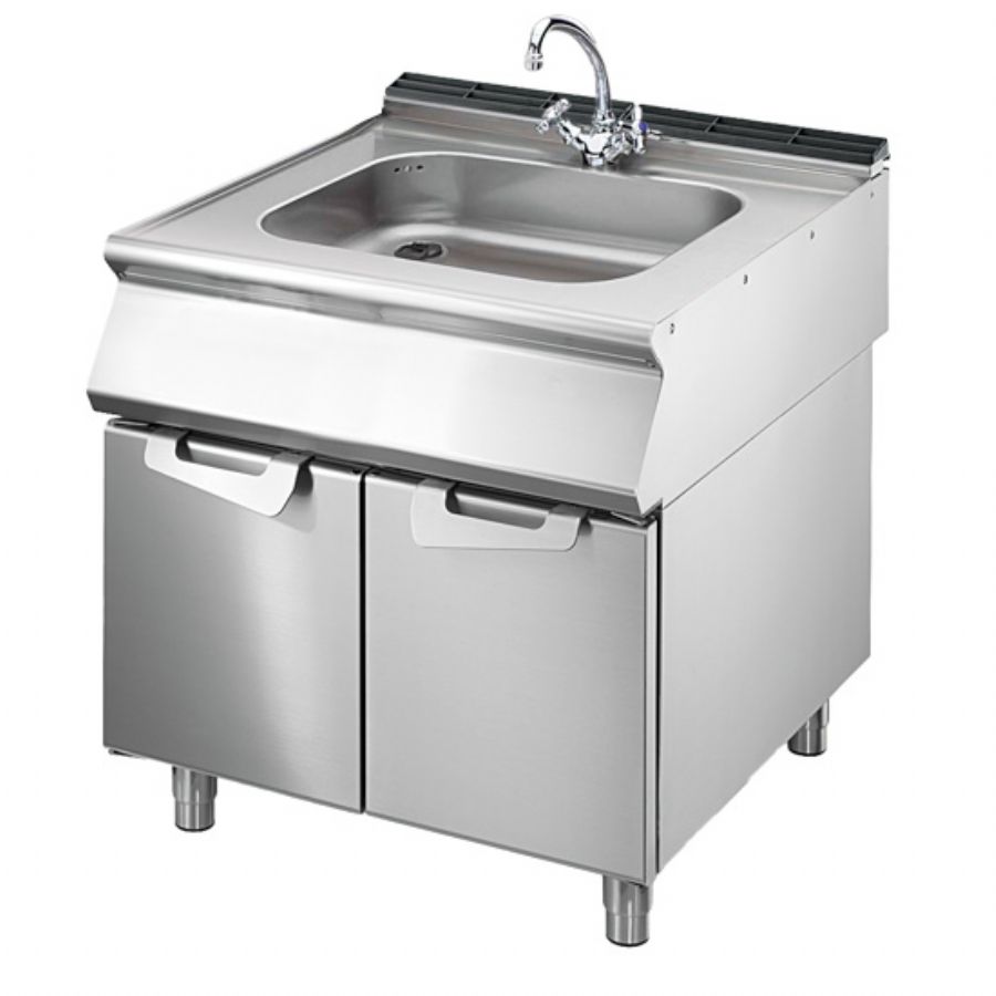 Le volume du bac 900 x 800 x 870 mm et le rangement intégré derrière les 2 portes permettent de gérer efficacement les flux de vaisselle, tout en gardant à l’esprit une attention aux besoins changeants de chaque établissement au fil des services.