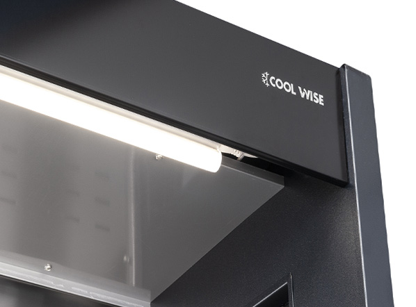 Cette armoire mural noire réfrigérée de la marque Coolhead vous permettra d'entreposer vos produits tout en les maintenant à une température comprise entre -1 et +7 °C grâce à sa réfrigération statique et son gaz réfrigérant R290.