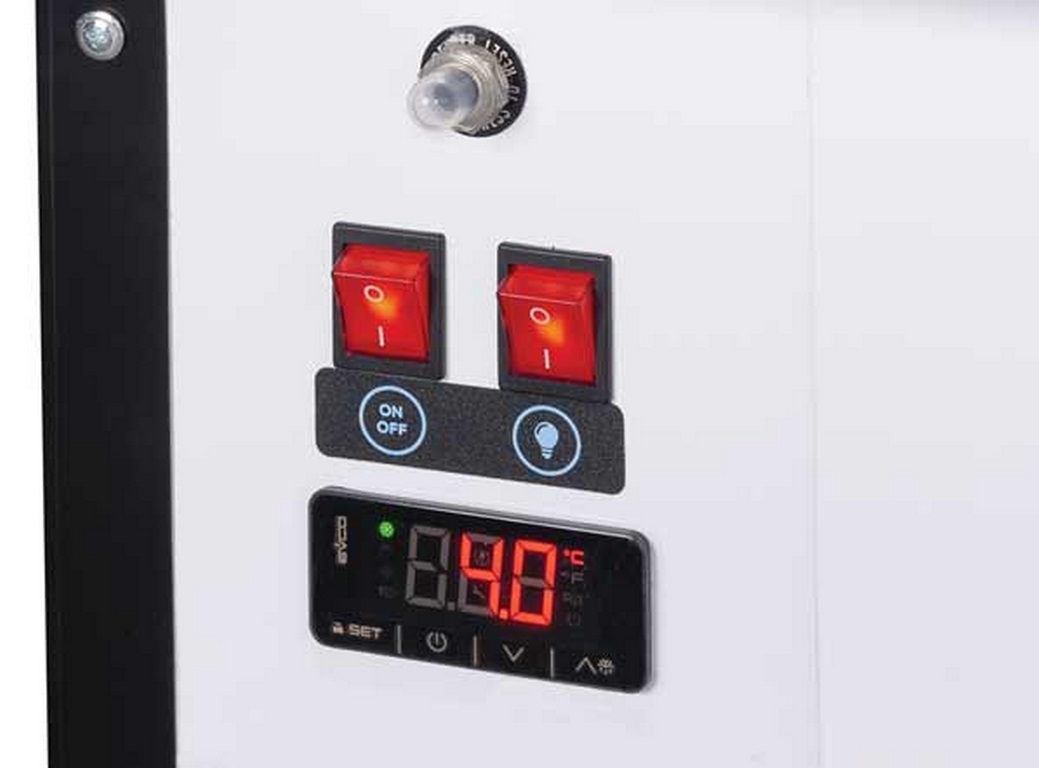 Une alarme est présente au cas ou la porte serait mal fermé ou la température trop haute.